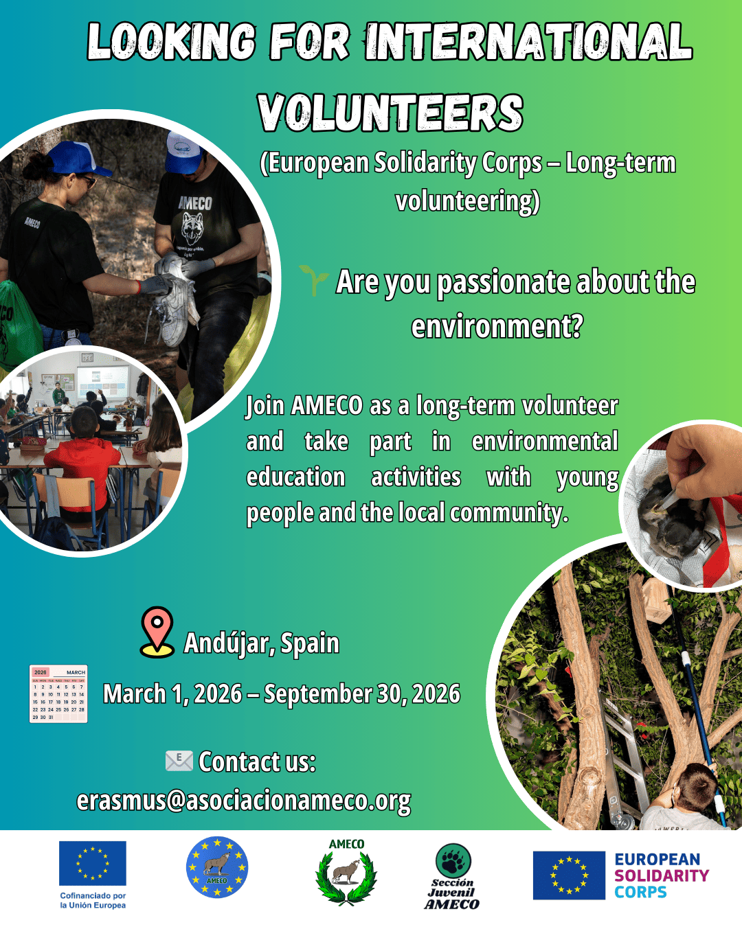 Send your CV and Motivational Letter to: erasmus@asociacionameco.org